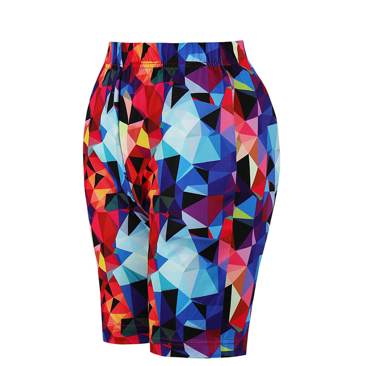 Women's Tight Shorts featuring stretchy, soft, comfortable and breathable fabric,well adapts to the body, fashion multi-color triangle pattern printed, high-waisted with elastic band.Suitable for working out, biking, running, walking, yoga and virtually any sport.
