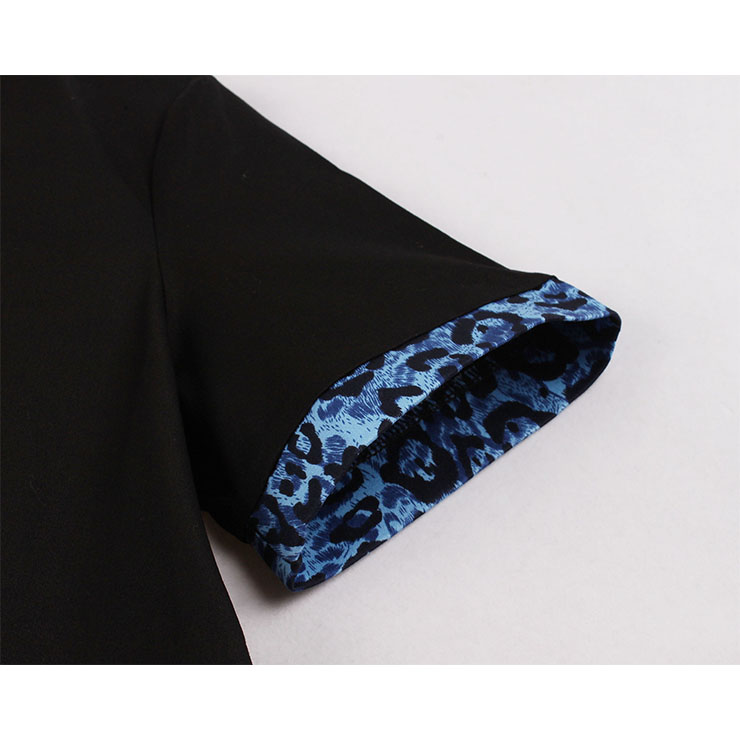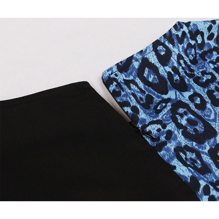 This vintage midi dress features: smiple round neck and elegant short sleeves, fashion hit color design one side leopard print and the other side black ,concealed zipper at back, high waist A-line silhouette show your figure. Perfect for daily casual, party, picnic, cocktail and other occasions.