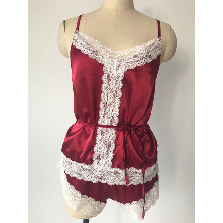 Made of high quality and soft material,this two-piece lingerie featuring sexy spaghetti straps camisole, cozy high waist panties, white floral lace trims detail,match a decorative lacing.