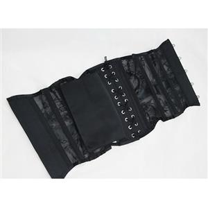 This Sexy Underbust Corset features breathable and see-through black mesh fabric with lace pattern, bulit-in 10 spiral steel bones and 4 flat steel bones, front durable steel busk closure, back lace-up for cinching.
