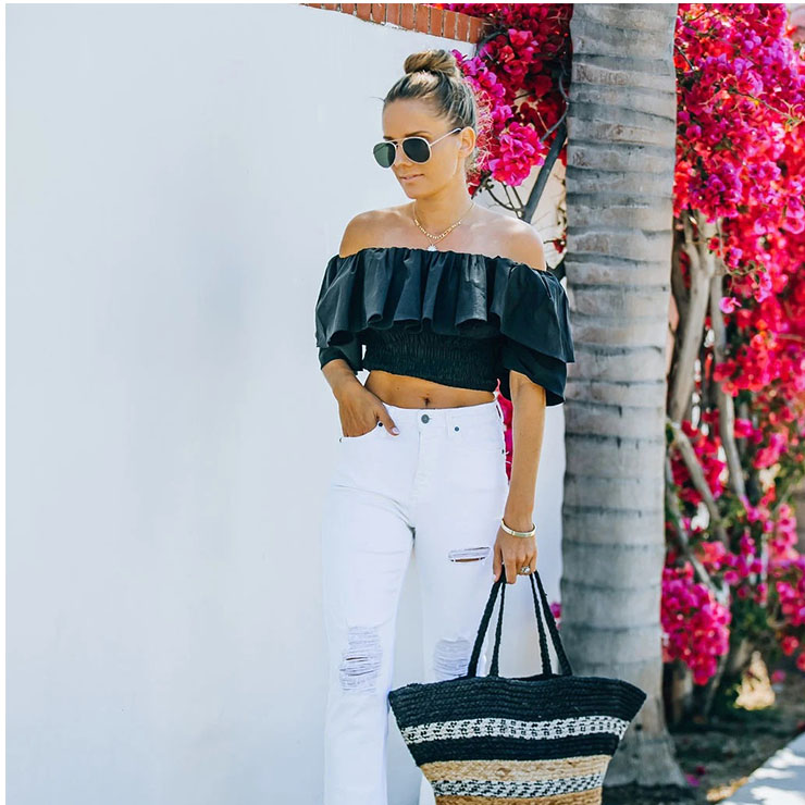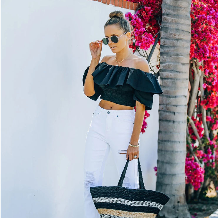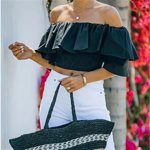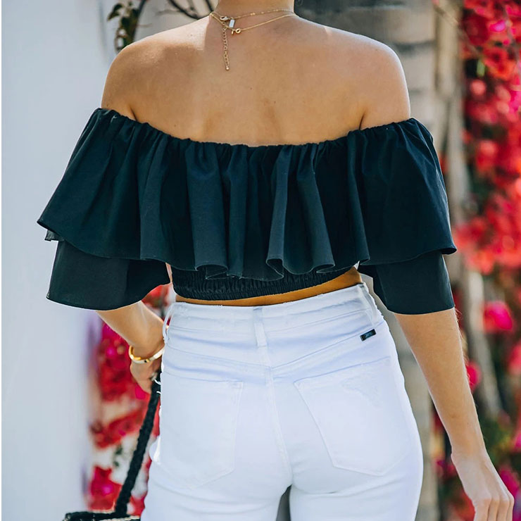 Sexy Black Tops made of comfortable cotton fabric, off shoulder with ruffle detail and short sleeves,high waist with elastic force.Perfect for casual wearing, dating or other occasions. Try pair it with our jeans or skirts to get a fashion look!(Only the tops)