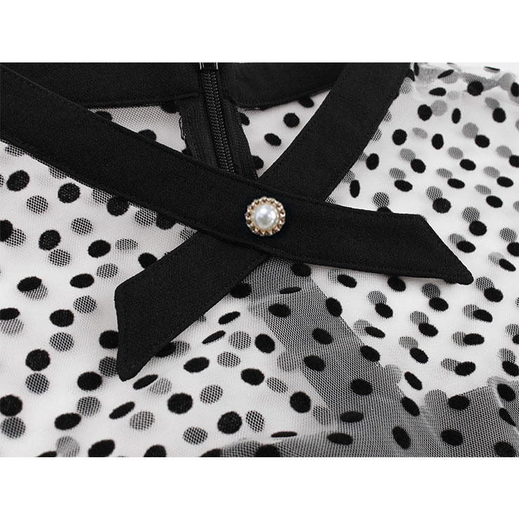 This Vintage Dress features sexy sheer mesh polka dots patchwork short sleeves and neckline lace-up detail, heart-shaped bodice dress, high waistline and A-line swing skirt make you slim and elegant, concealed zipper closure on the back.Perfect for daily casual, cocktail, dating, outdoor, party and other occasions.