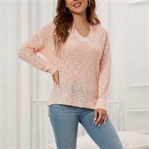 This casual sweater featuring high quality knitted fabric, simple V neckline and long sleeves, loose waist, side splits and loose hemline design make you feel comfortable.