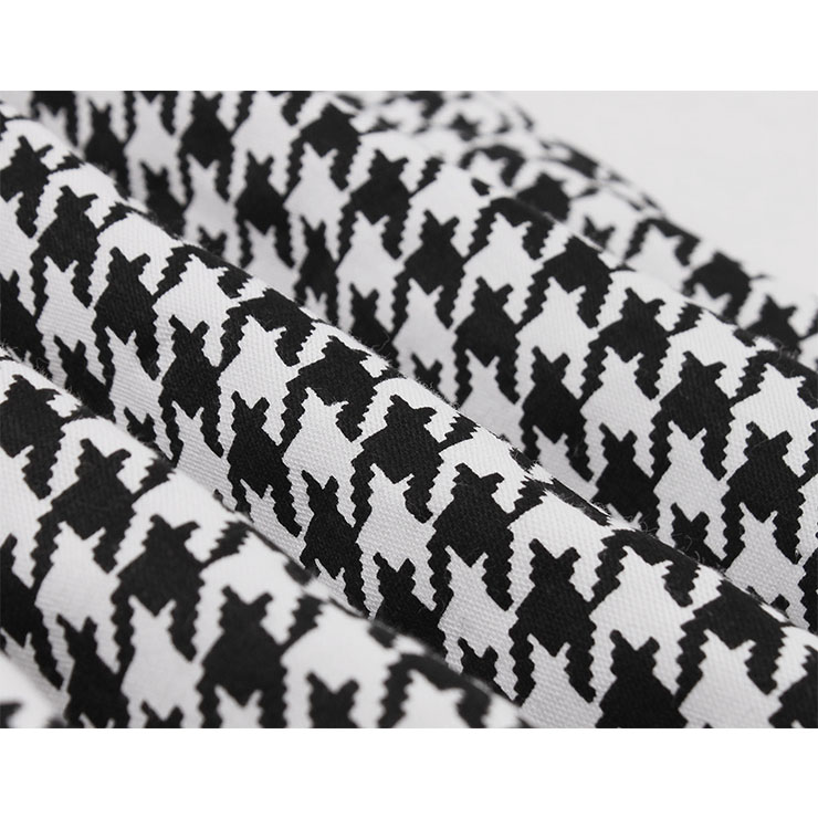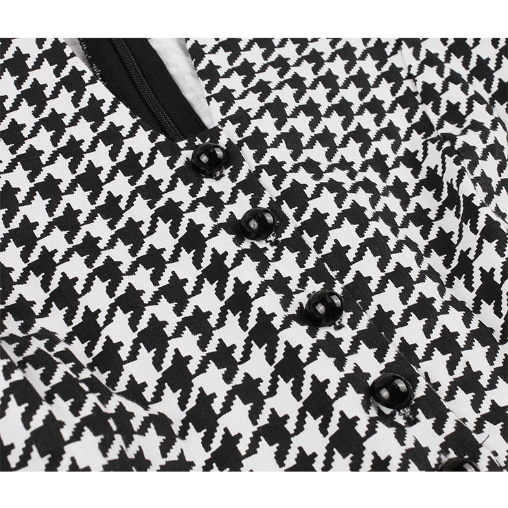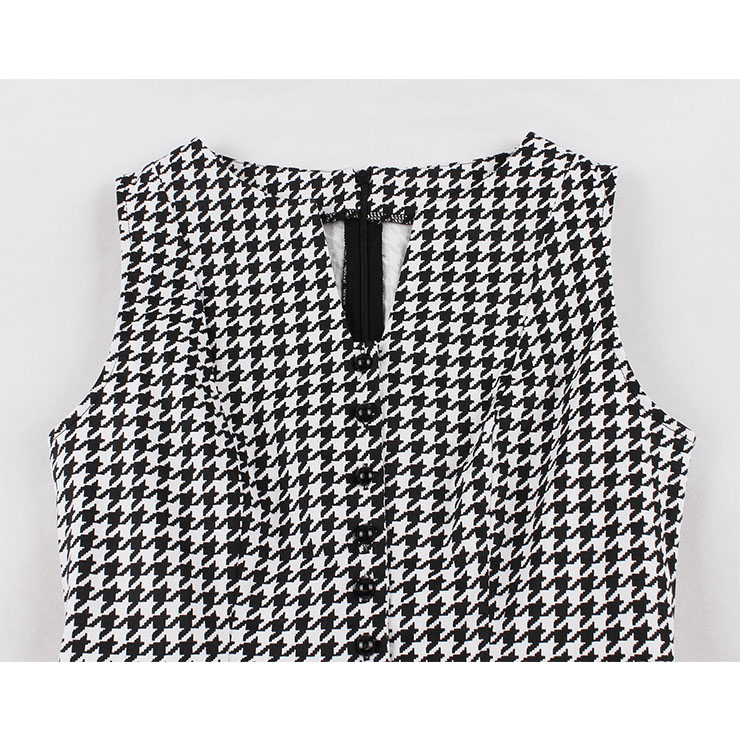 This Vintage Dress features classical Houndstooth pattern, sexy V neckline and sleeveless, front button bodice, high waistline with belt, midi length and swing skirt make you slim and elegant, concealed zipper closure on the back.
