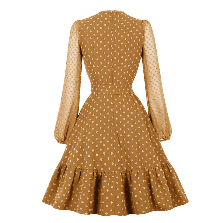 This Vintage Dress features furry detailed fabric, unique sweetheart bodice with cut-out design lace-up like a cape, lovely puff long sleeves, high waistline with a sash, midi length and A-line swing skirt make you slim and elegant, concealed zipper closure on the back. Perfect for daily casual, cocktail, dating, outdoor, party and other occasions.
