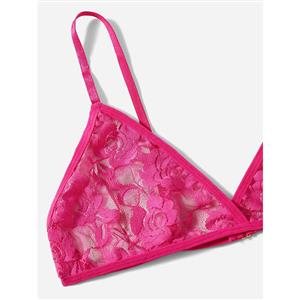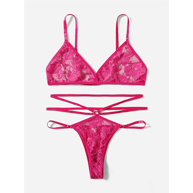 This sexy lingerie featuring see-through floral lace fabric, spaghetti straps triangle lace bralette with back hook closure, matching lace thong with strappy detailing.