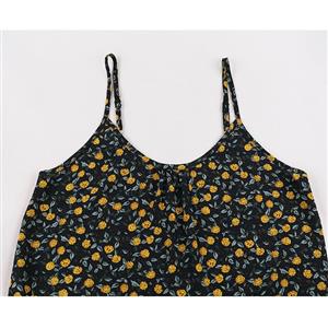 This casual camisole featuring yellow floral print over black fabric, sexy adjustable spaghetti straps design, loose waistline design make you feel comfortable.
