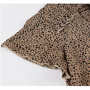 This casual top featuring high quality leopard print fabric, unique scalloped tie collar and flutter sleeves, ruffle detailing and loose waist, loose hemline design make you feel comfortable.