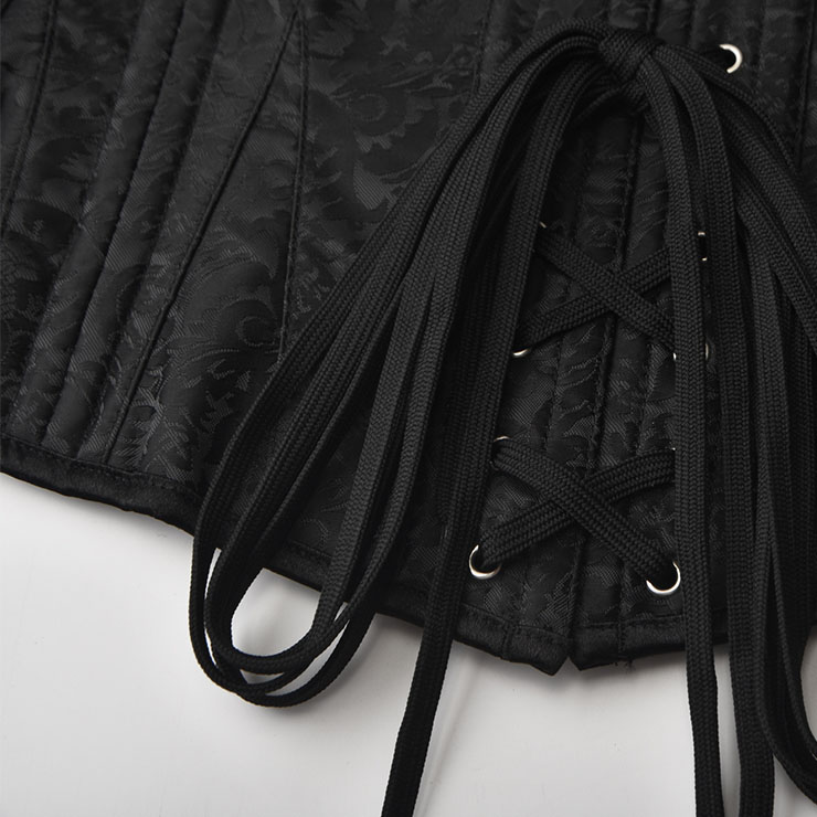 This Retro Black Underbust Corset featuring made of good high quality fabric, beautiful flower pattern, 18 plastic bones for shaping, front zipper, back lace-up for cinching.