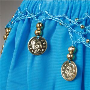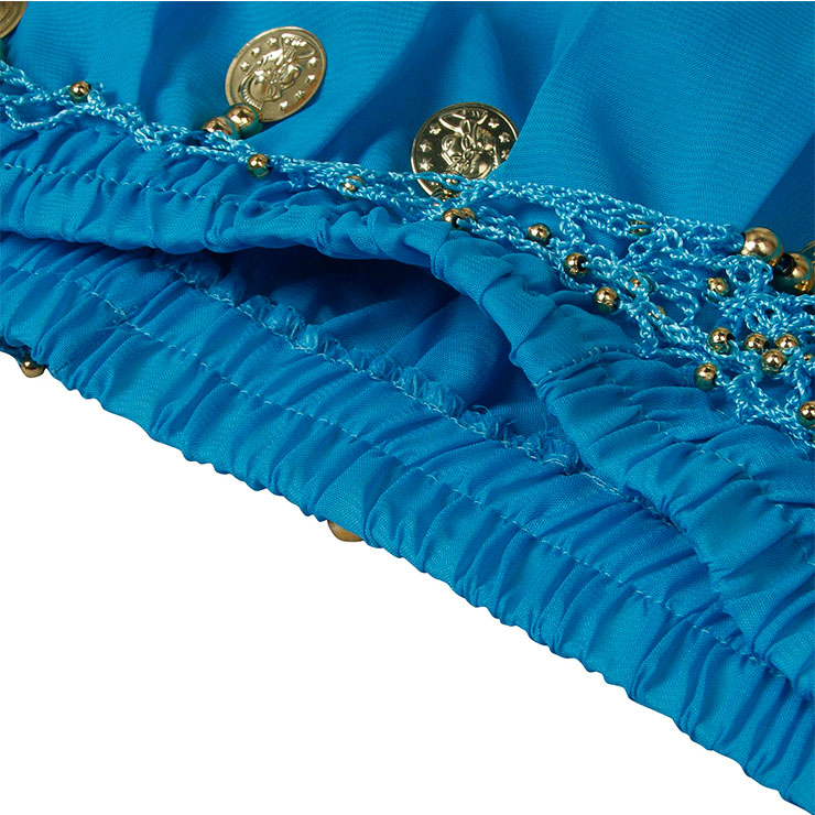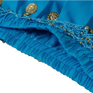 5pcs, Sexy blue Belly Dance Costume includes a halter backless top with metal embellishments details, a loose pants with metal details,matching with veil , earings, necklace and bracelet. Perfect for belly dance, Persia style dance performace and so on.