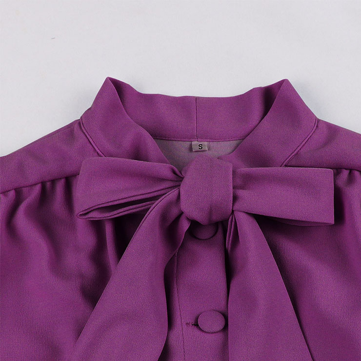 his purple elegant pencil dress features: half-high neck and simple short sleeves, front button closure and lace-up bowknot, high waist and swing skirt design make you look yet elegant and slim. Perfect for daily casual, cocktail, dating, outdoor, party and other occasions.