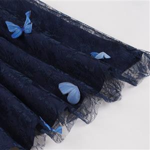 This blue Victorian Gothic A-line skirt features thin and soft fabric, double layered design, blue butterfly pattern organza outer, high waist with elastic band, ruffle hemline make you look more elegant. Perfect for daily casual, ball, party, banquet and other special occasions.