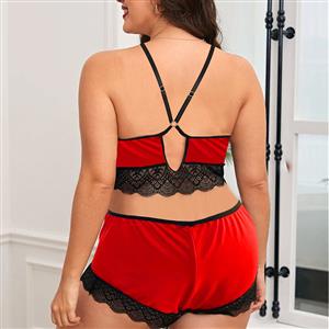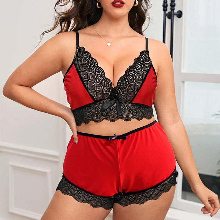 This plus size sexy lingerie set includes a crop top with spaghetti straps, low-bra and backless, made of comfortable and soft lace fabric, a same style short pants. Suitable for nightwear, daily collocation, night club, at home, Valentine's Day and more.