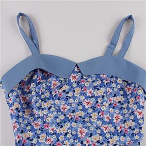 This blue sweet and lovely dress features: V neck, spaghetti straps and sleeveless show off your collarbone, lovely pattern print, concealed zipper on the right side. High waist and swing skirt make you look yet elegant and slim. Perfect for cocktail party, tea party, picnic, office, dating, daily casual and other occasions.