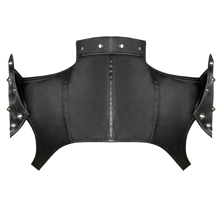 This steampunk shrug is characterized by high neck and adjustable buckles at front, cap sleeves, sliver chain and silver rivets embellished, plastic bones for support. A wonderful addition for steampunk costume and Gothic style.