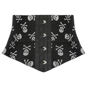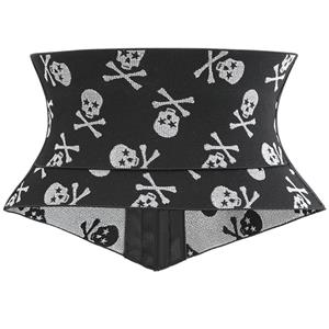 This halloween crazy sexy black waist training cincher corset, with 2 steals boned, cute different colors skulls print, four lines hook and eye closure in front,