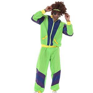 This men's retro tracksuit hip-hop rock style cosplay costume is made of fashion and soft color blocking fabric, includes a loose windbreaker with long sleeve design and front zipper closure, a loose trousers with eye-catching stripes, high waist with elastic band. Matching kerchief. Give you a unique rock king style!