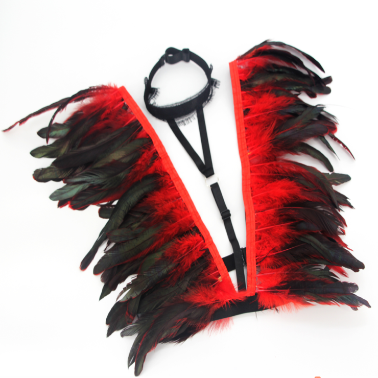 This fashion Victorian Gothic shawl made of high quality feather, some lace and back closure design, front and back hollow out, o ring link to straps, spaghetti straps can flexible length adjustment. Suitable for cosplay, Halloween, Drama and other occasions.