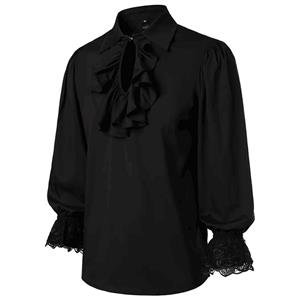 This men's Renaissance-Victorian steampunk ruffled medieval Halloween costume is made of cotton blend fabric, long-sleeved cuffs with lace trim, and lapel design for easy wearing. It can be paired with shapewear, trousers, and shorts.