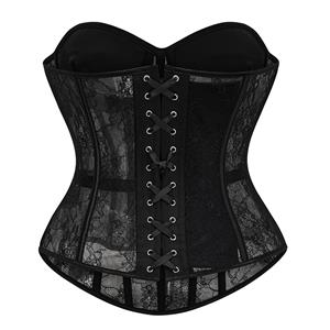 This elegant strapless corset features a heart-shaped bust design with internal boning for optimal shaping. The delicate lace and mesh construction offers a sensual look, while the back lace-up closure ensures a customizable fit. Perfect for creating a vintage silhouette or layering under outfits.
