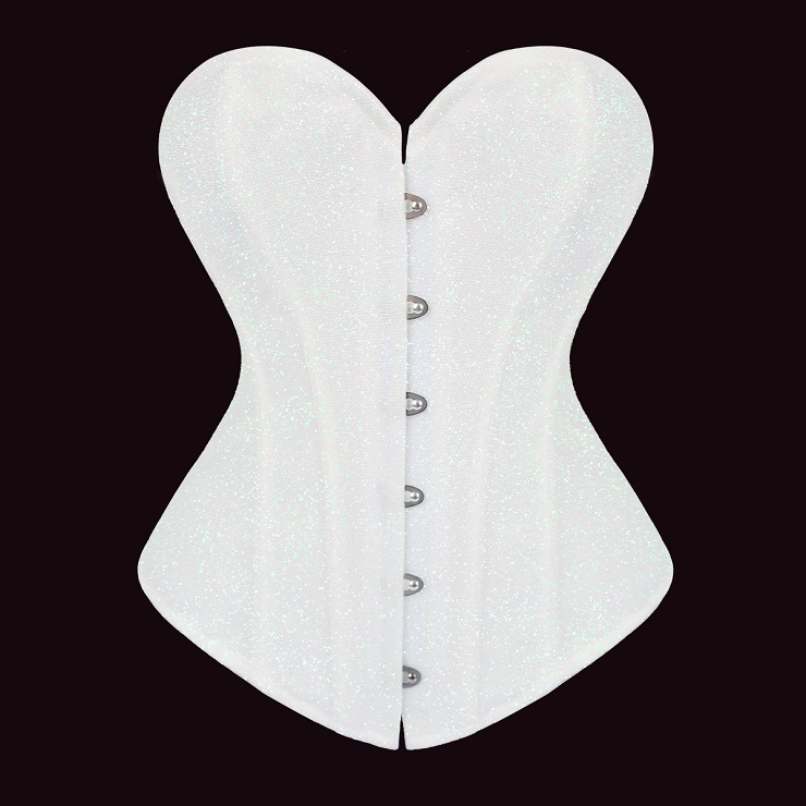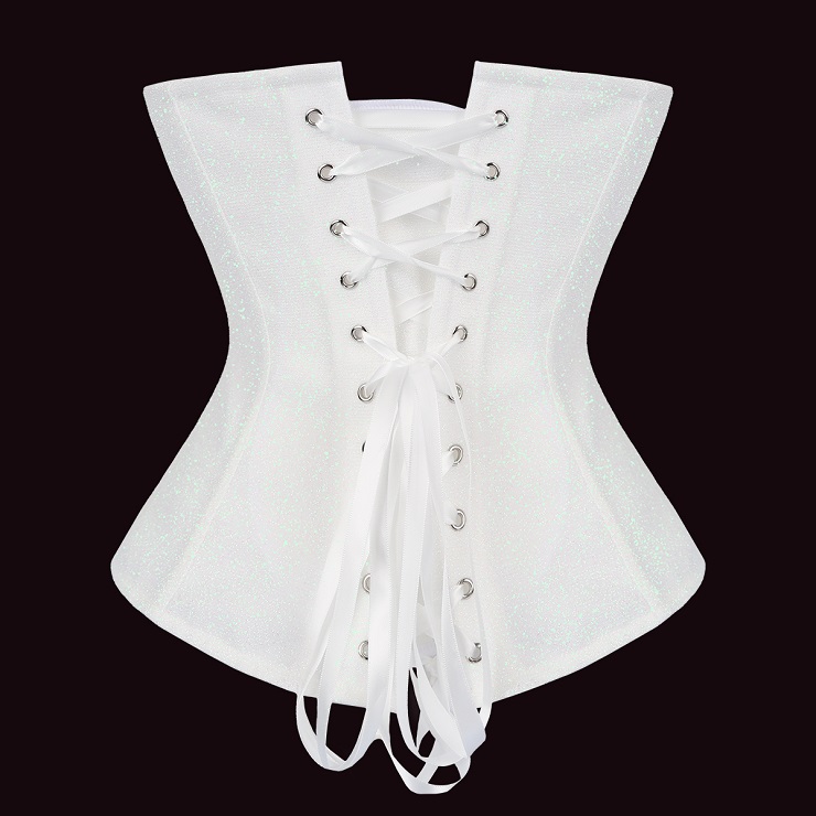 Elegance reimagined in shimmering white! This vintage-inspired corset features a flattering sweetheart neckline and adjustable front lace-up design with metallic grommets. The all-over ivory sequin fabric creates a soft luminous glow, while the internal boning provides gentle waist shaping. Perfect for weddings, holiday parties, or special occasions where sophistication meets romance.
