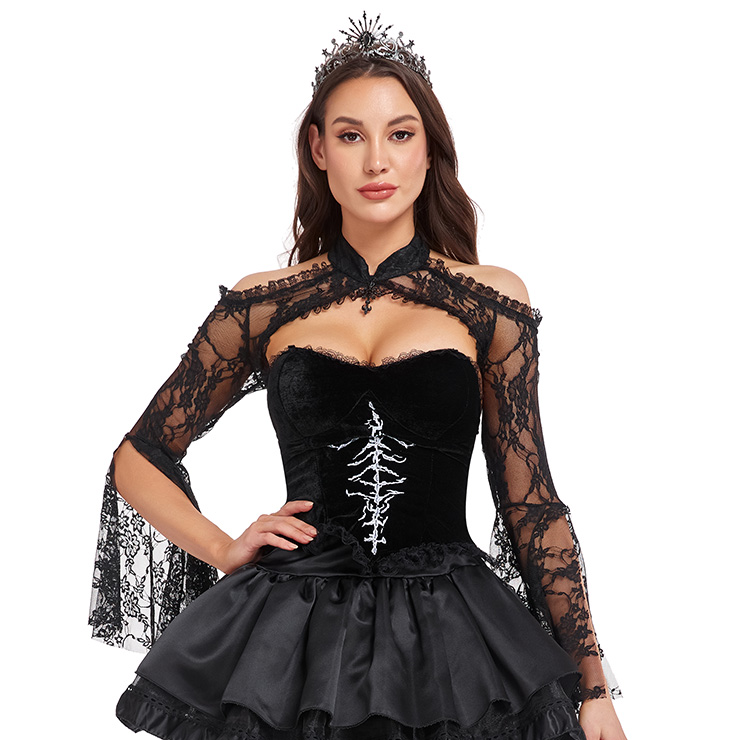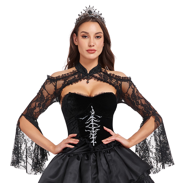 Add dramatic flair to your gothic or Victorian-inspired outfits with this detachable lace cape shawl. Made from delicate black lace, it features elegant bell sleeves and intricate embroidery details. This cape easily layers over dresses, corsets, or tops, transforming your look for themed parties, cosplay events, or evening wear. Perfect for Halloween, renaissance fairs, or photoshoots, it’s a versatile accessory to complete your dark romantic style.