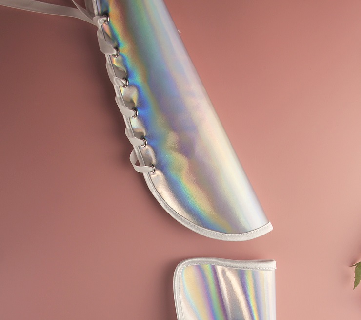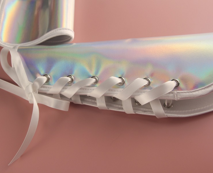 Upgrade your look with these sleek silver leather arm sleeves, featuring an adjustable lace-up design with sturdy metal eyelets. Made from soft yet durable leather they blend edgy style with comfort, perfect for gothic, steampunk, or cosplay outfits. The form-fitting shape stays secure for all-day wear, ideal for events or daily fashion