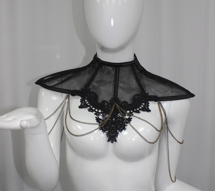 Victorian Gothic Choker Black lace mesh collar with dangling chains for a dramatic look. Adjustable fit, comfortable to wear. Perfect for Halloween, cosplay, or gothic fashion
