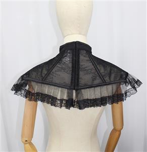 Elevate your Halloween ensemble with this exquisite Victorian-inspired lace collar, crafted from premium black lace with intricate floral patterns and delicate ruffled edges. The structured high-neck design offers a timeless elegance, perfect for vampire, witch, or Victorian ghost costumes. Lightweight and comfortable, it ensures all-night wear during festivities while adding a touch of hauntingly beautiful detail to any outfit