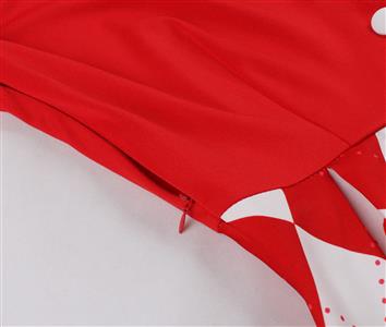 Step into a playful vintage fantasy with this strawberry-printed mini dress. The classic collar and short sleeves with delicate white cuffs frame a charming bodice adorned with heart-shaped buttons. The adjustable red ribbon waist tie cinches to flatter your silhouette, while the flared A-line skirt dances with a vibrant mix of strawberries and polka dots on a white background. Lightweight and full of retro charm, it's perfect for picnics, garden parties, or adding a sweet touch to your day.