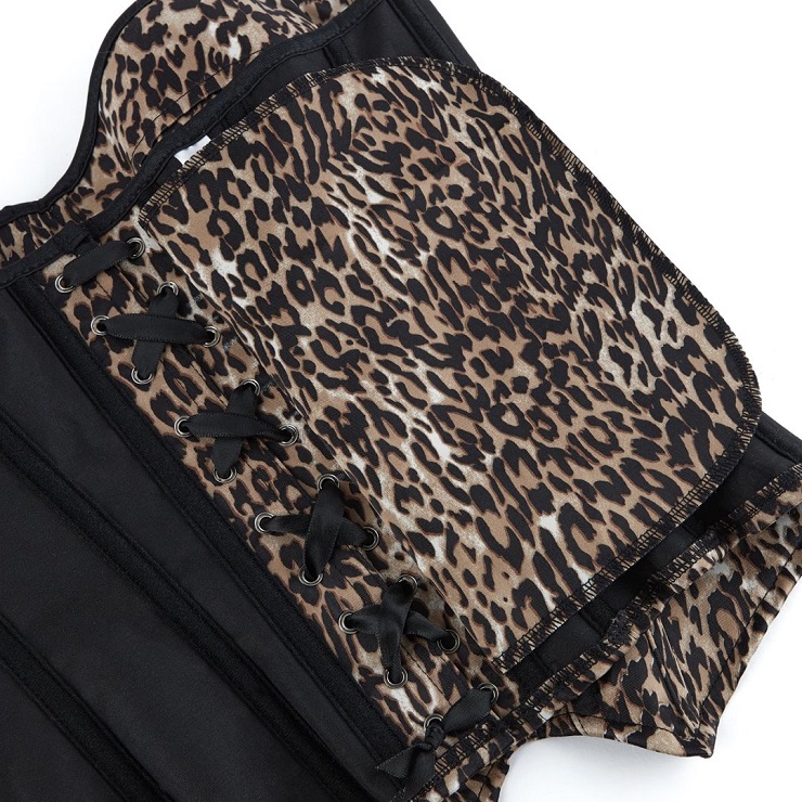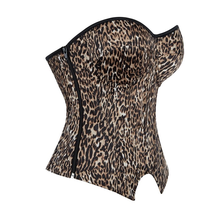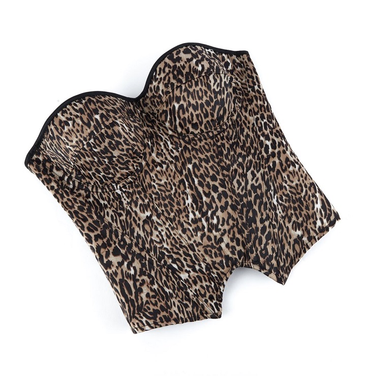 Make a bold statement in this leopard print corset, designed to smooth and sculpt your figure. The side zipper allows for easy wear, while the adjustable back lace-up closure with metal eyelets creates a custom, waist-cinching fit. Made from stretchy, sleek fabric, this strapless bustier is perfect for parties, nights out, or daring layering.