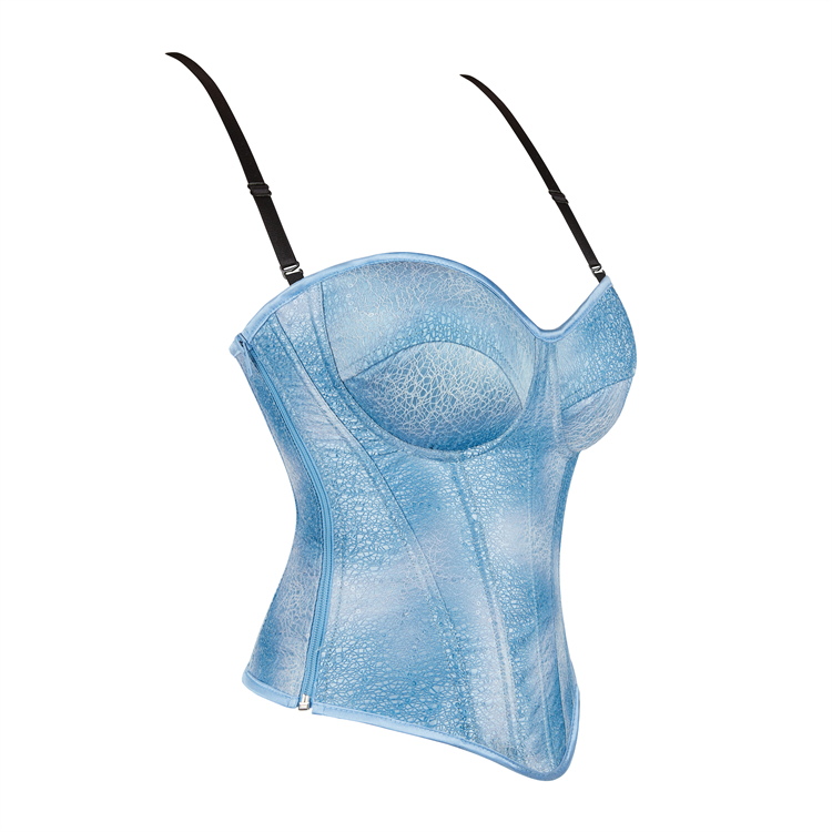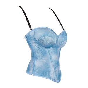Crafted in light blue, this strapless corset shapes your silhouette with a bust-enhancing cut and secure black straps. The adjustable back lace-up closure cinches the waist for an hourglass shape. Made from smooth, elastic fabric, it offers comfortable support—perfect for special occasions, photoshoots, or layering.