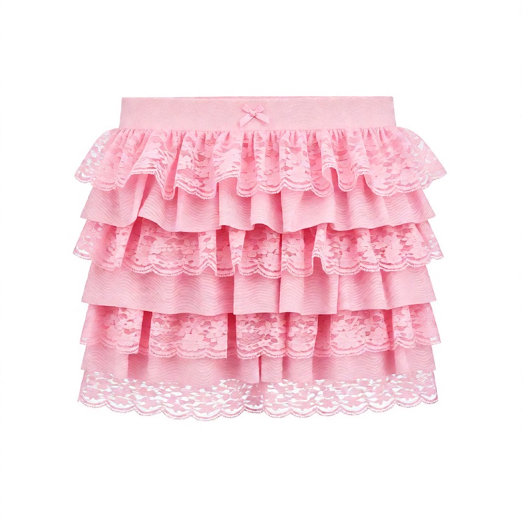 This soft pink mini skirt features delicate lace tiers that create a romantic, fluttering silhouette. A dainty bow at the waist adds a sweet and charming touch, perfect for expressing a playful yet feminine style. Made from gentle, lightweight lace fabric, it’s ideal for dates, parties, or adding a pop of color to your everyday wardrobe.