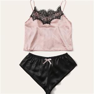 Sexy Soft Satin Lace Trim Camisole and Panty Lingerie Set N20091